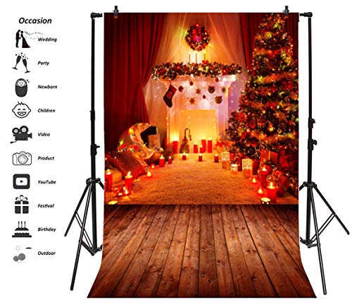 YongFoto 1,5x2,2m Vinile Fondali Fotografici Natale Decorazione d'interni Albero di Natale Camino Che colpisce con forza Sfondi Foto Partito Studio Fotografico Puntelli