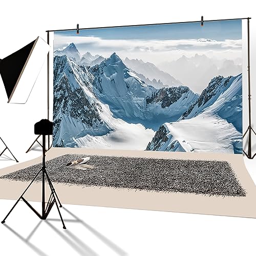 YongFoto 2,2x1,5m Vinile Fondali Fotografici Paesaggio invernale Montagne innevate Alpi Natale Sfondi Foto Partito Studio Fotografico Puntelli