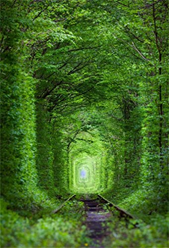 YongFoto 1x1,5m Vinile Sfondo Fotografico Giungla Ferrovia Brani Alberi Foglie verdi Fiaba Natura Primavera Viaggio Fondale Foto Photo Booth Partito Banner Bambini Photo Studio Puntelli