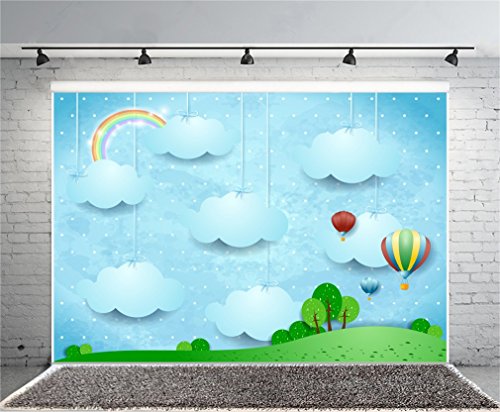 YongFoto 2,2x1,5m Vinile Sfondo Fotografico Paesaggio surreale Hanging Cloud Mongolfiere Fondale Foto Festa Bambini Boby Nozze Adulto Partito Studio Fotografico Puntelli
