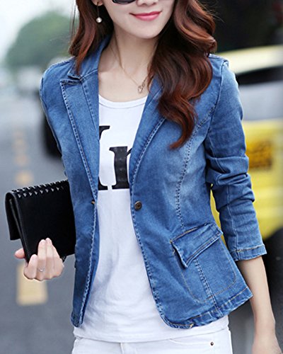 Yonglan Donna Corto Giacca di Jeans Blazer Risvolto Manica Lunga Pulsante Denim Giubbotto Cappotto Aspicture M