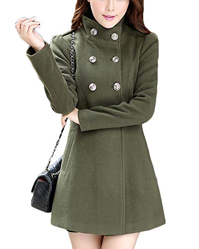 Yonglan Donna Inverno Stile Militare Cappotto di Lana Trench di Cashmere Misto Doppio Petto Giacca Esercito Verde 2XL