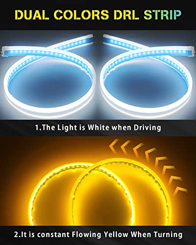 YONGMING Impermeabile Luci diurne 30CM 12V Flessibile DRL LED Strisce Luminose Lampeggianti per Faro Auto Doppio Colore Bianco Guida Ambra Sequenza Esecuzione,Confezione da 2PZ