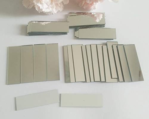 YongPan - Piccoli specchi rettangolari in vetro da 1,6 x 5,1 cm, piastrelle di vetro a specchio per mosaico, 60 pezzi Argento
