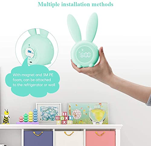 YONGYAO Sveglia Bambini Sveglia luminosa per bambini, con coniglietto Rabbit, sveglia lampada creativa, silenziosa, funzione snooze, 6 suoni forti, luce notturna controllata dal tempo, verde