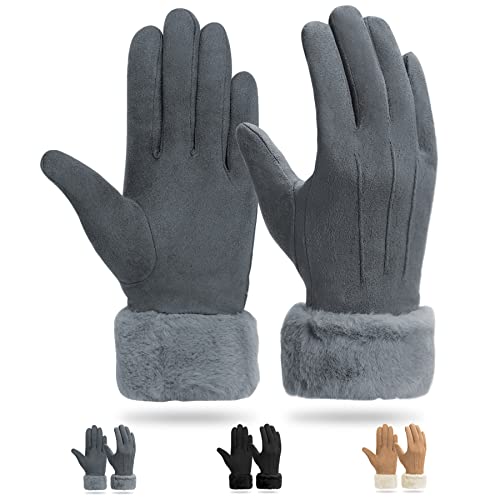 YONHEE Guanti Invernali da donna Touch Screen - Donna Scamosciato Touchscreen Guanti Guanti caldi invernali Antivento Fodera in Pile Guanti Caldo Vello Termico Mittens