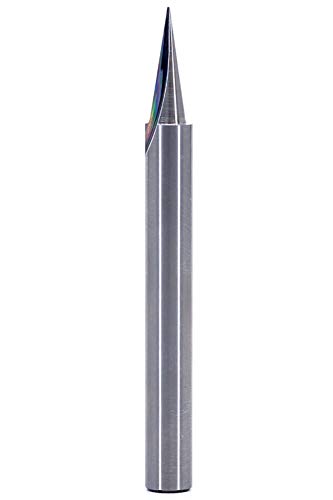 Punta per incisione in metallo duro massiccio da 18 V con punto zero virtuale. La lunghezza di taglio è di 5/8" con un ampio diametro di taglio di 3/16".