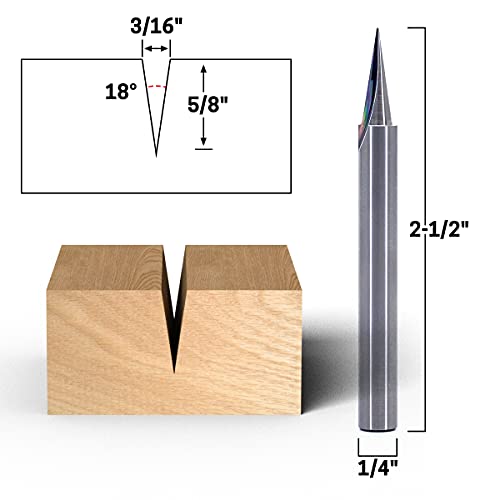 Yonico 14104q 18 - Punta per fresa in carburo massiccio con scanalatura a V, attacco 1/4"