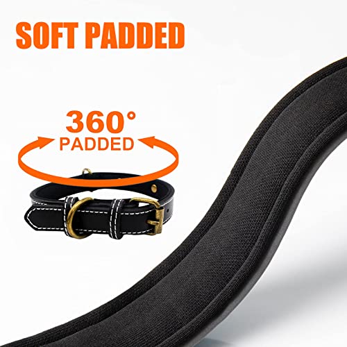 Yonsbox Collare Imbottito per Cani Personalizzato Resistente Nero Pelle con Targhetta Nome Numero di Telefono Collare Morbido Cuoio Cane Taglia Grande Media Piccola Cucciolo Femmina Maschio