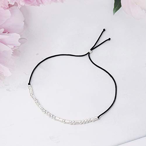 YooAi Inspirational Codice Morse Bracciale Regali per Le Donne Il Suo Braccialetto di Perle in Argento Sterling su Gioielli in Cordoncino di Seta per Le Donne Le Ragazze Non mollano mai