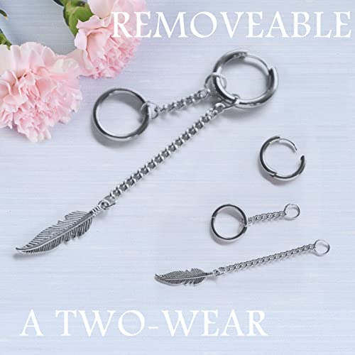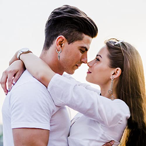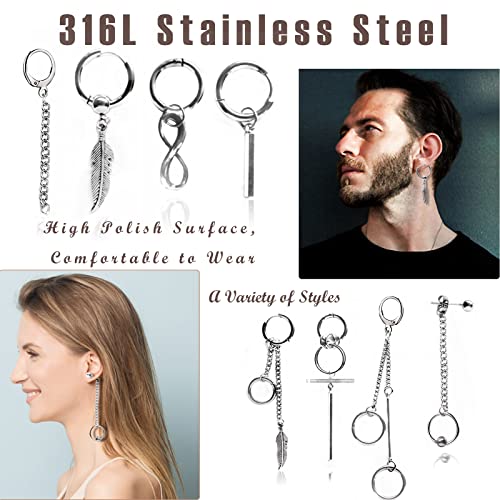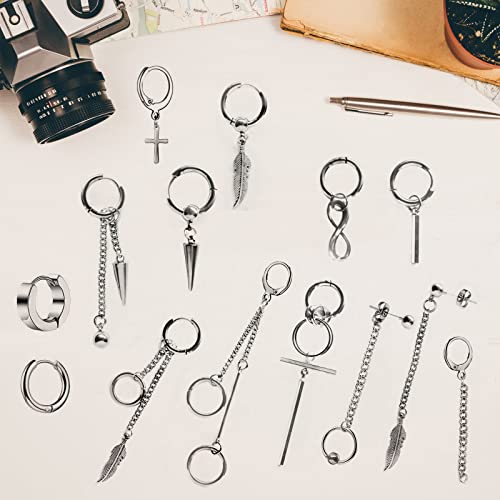 YOOBNG Orecchini Uomo 14 Pezzi Argento Orecchini Cerchio Croce Orecchini Set Acciaio Inossidabile Orecchini Pendenti a Catena Lunga Orecchini per Uomo Donna (Argento)