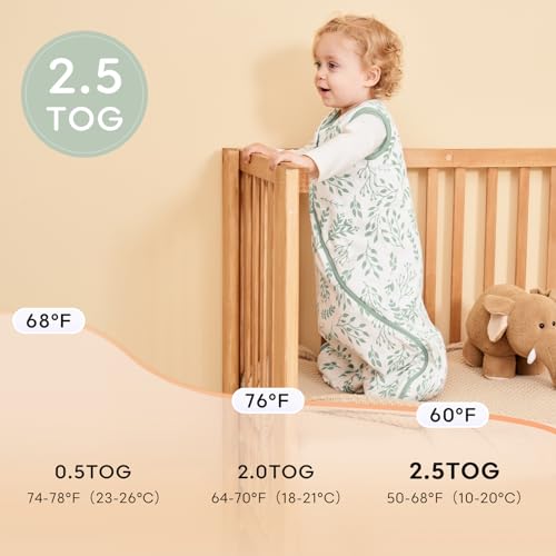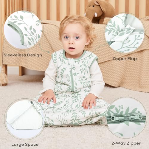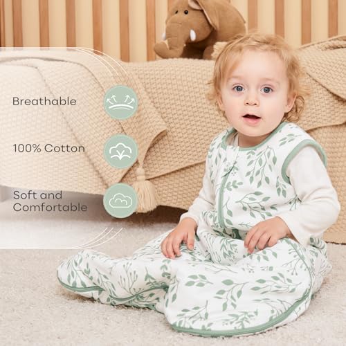 Yoofoss Sacco Nanna per Bambini 100% Cotone 2,5 Tog Sacco Nanna Invernale Extra Caldo Sacco Nanna Neonato in 18-24 Mesi Perfetto per l'Inverno Little Foglie