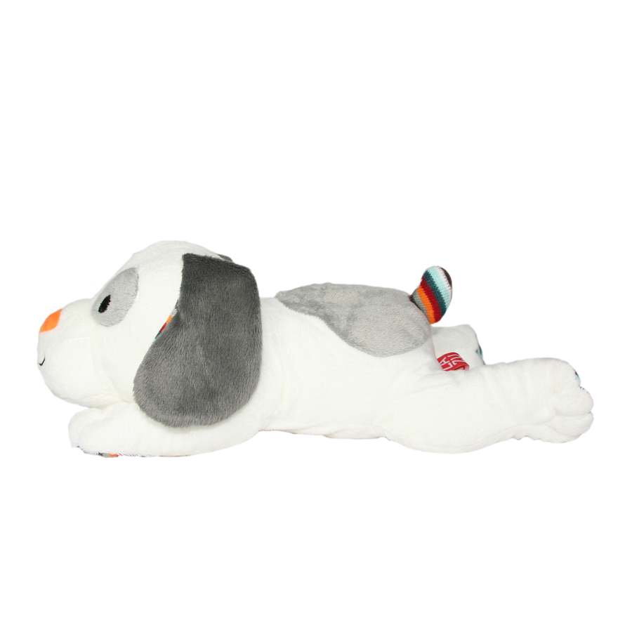 Dex, Liz e Don sono dolci peluche che riproducono il suono del battito del cuore. Questi fantastici pupazzi calmano il bambino quando inizia a piangere e lo aiutano ad abituarsi alla vita fuori dall'utero della mamma. Dopo 10 minuti si spegne automaticamente. Oltre al battito cardiaco, è possibile scegliere altri suoni. Ad esempio, il suono di una cascata. Il volume si può regolare. Dettagli Il peluche simula il rumore del battito cardiaco della mamma ed ha un effetto calmante sul neonato. Sei diversi suoni a scelta: Battito cardiaco, cascata e 4 dolci melodie. I suoni si attivano semplicemente scuotendo il peluche Dopo 10 minuti, si spegne Grazie al sensore sonoro integrato, si attiva automaticamente quando il bambino inizia a piangere. Il volume è regolabile Esistono 3 diversi modelli: Dex il cane, Liz l'agnellino e Don l'asino Alimentazione a batterie (2 AA NON incluse nella spedizione) Dimensioni: 36 x 19 x 13 cm Lavabile fino a 30 gradi