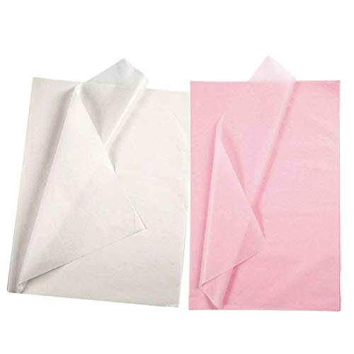 YooKreativ Set di Carta velina, Bianco e Rosa Chiaro, 50 x 70 cm. 20 Fogli di Carta velina Trasparente per Fai da Te e Decorazione, Carta velina Bianca, Carta velina Rosa Chiaro, Carta velina Rosa.
