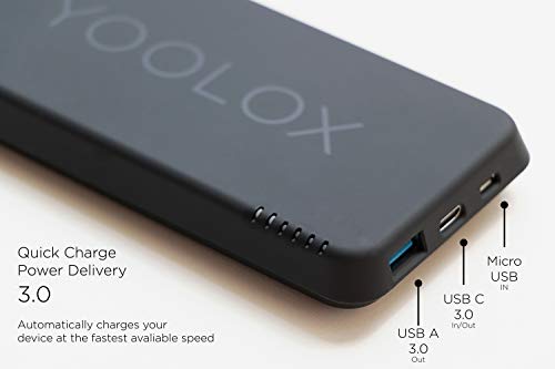 YOOLOX 10k | 2nd Generazione Caricabatterie Portatile Wireless | 10000 mAh, Compatibile con iPhone 14, 14Pro, 13, 13Pro, Max etc. And Galaxy S22, S21, etc. Quickcharge 3.0, USB Type C