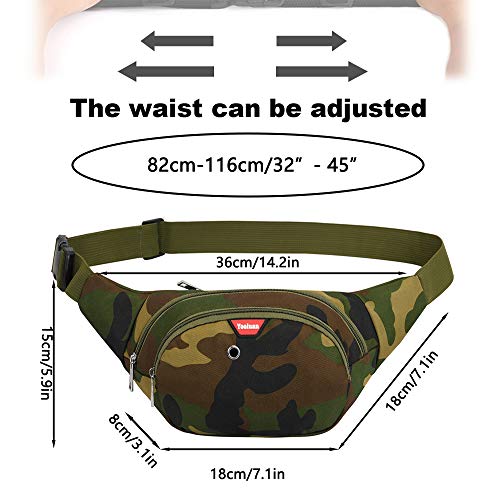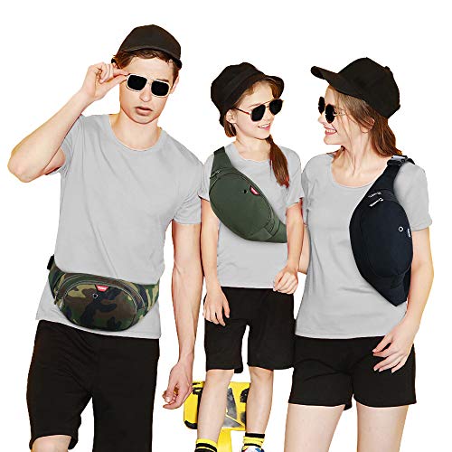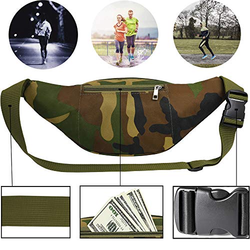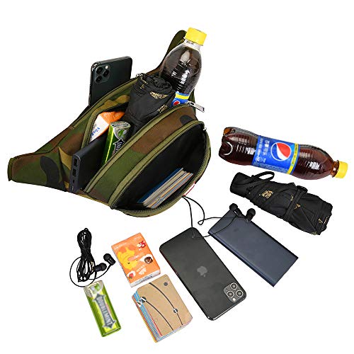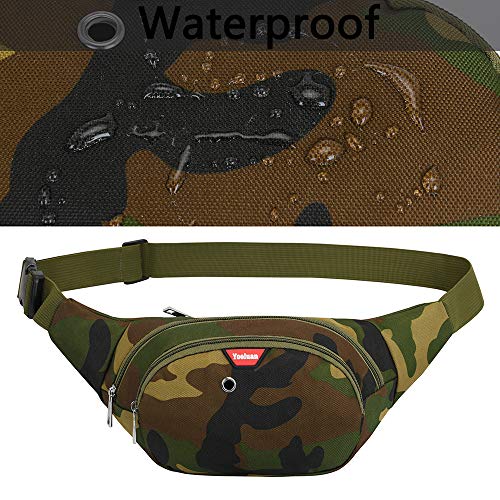 Yooluan Marsupio Impermeabile di Pelle con 3 Zip-Marsupio per Viaggio, Escursioni, Sport all'Aperto, e per la Vacanza (Camo Verde)