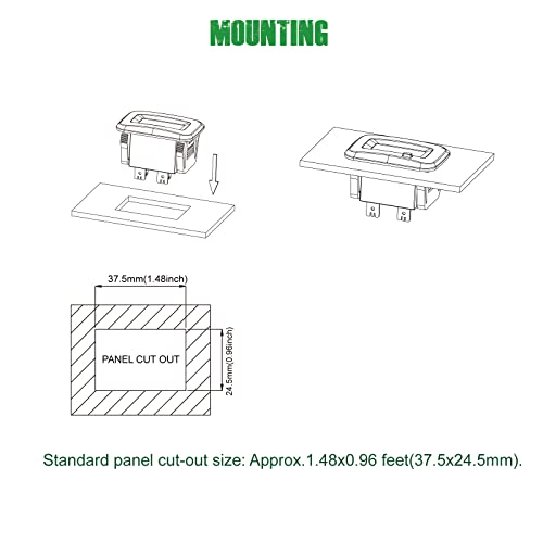 Design a scatto per dimensioni di ritaglio del pannello standard: circa 0,123x0,08 piedi (37,5x24,5 mm).