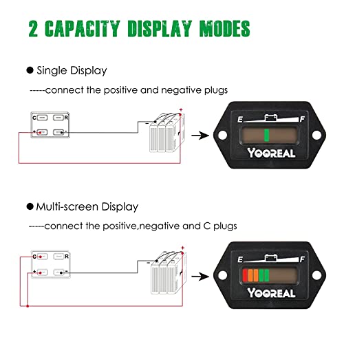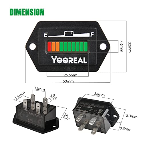 Yooreal 48V Misuratore di Batteria al Piombo, Indicatore di Utilizzo della Batteria, Adatto per Carrello da Golf Carrello da Viaggio Carrello Elevatore Macchina Scrubber Ebike