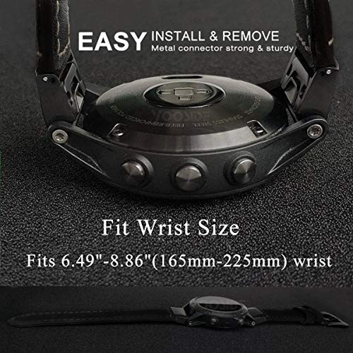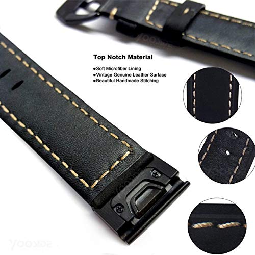 YOOSIDE Cinturino per Fenix 6X / Fenix 5X, 26mm QuickFit in metallo acciaio inossidabile con cinturino in vera pelle per Garmin Fenix 6X Pro/Sapphire,Fenix 3/3 HR, Enduro,Tactix Delta (Nero)
