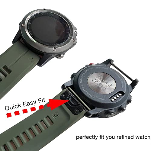 YOOSIDE Cinturino per Fenix 5X/Fenix 6X, 26mm in silicone impermeabile cinturino di ricambio per Garmin Fenix 5X/5X Plus,Fenix 6X Pro/Sapphire,Fenix 3,Quatix 3,Tactix Delta(verde)