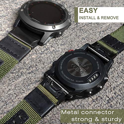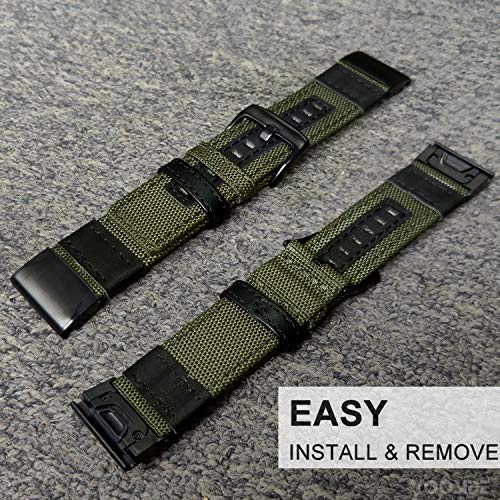 YOOSIDE Cinturino per Garmin Fenix 5X/Fenix 6X, 26mm Nota Cinturino Resistente in Nylon Resistente al Sudore per Garmin Fenix 5X/5X Plus,Fenix 6X PRO/Sapphire,Fenix 3/3 HR, Enduro (Verde)
