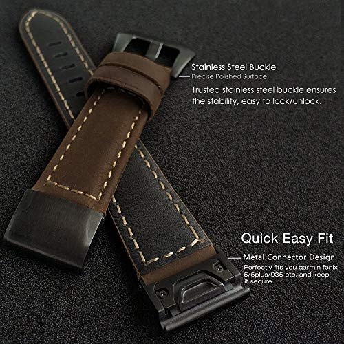 YOOSIDE Cinturino per Garmin Fenix 5 / Fenix 6 / Forerunner 935 /Instinct/Quatix 5, 22mm Quick Fit in Metallo Acciaio Inossidabile con Cinturino in Vera Pelle (Marrone)