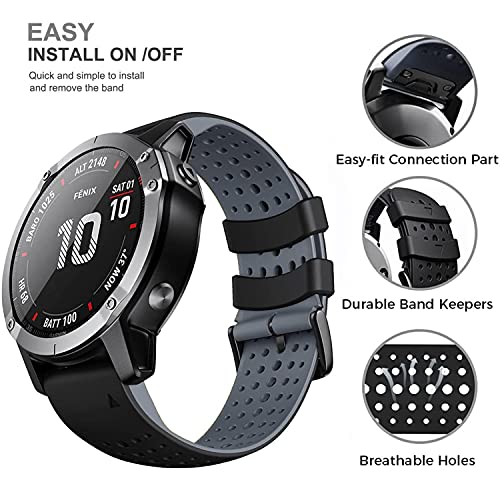YOOSIDE Cinturino in silicone per Garmin Fenix 6X / Fenix 5X / Enduro, 26mm QuickFit Cinturino orologio ipoallergenico impermeabile in silicone morbido per Fenix 3 (Nero Grigio)