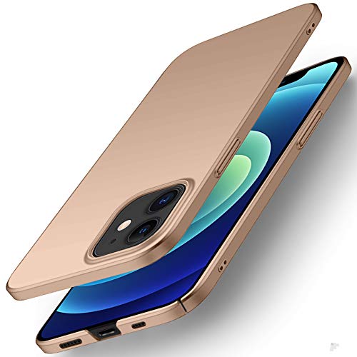 Yoowei Compatibile con iPhone 12 Mini Cover Plastica Rigida [Ultra Sottile] [Pieno Bordo Protezione] PC Shell Duro Retro Custodia Protettiva Caso, Tocco liscio - Oro