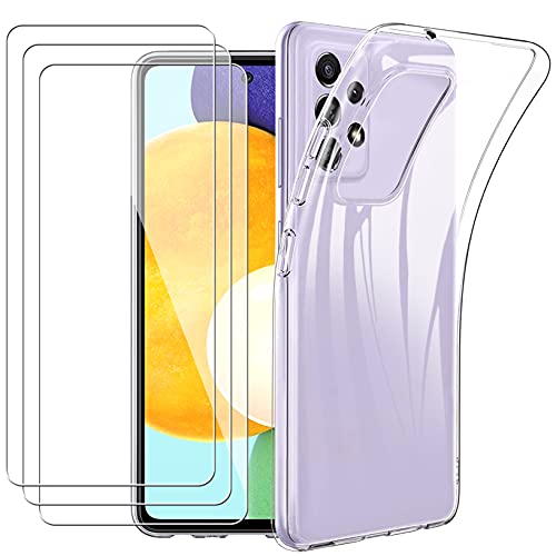 Yoowei Cover Compatibile con Samsung Galaxy A72 Trasparente [3 Pezzi Pellicola Protettiva in Vetro Temperato] Morbido Silicone Ultra Sottile Custodia TPU Flessibile Gomma AntiGraffio Antiurto Caso