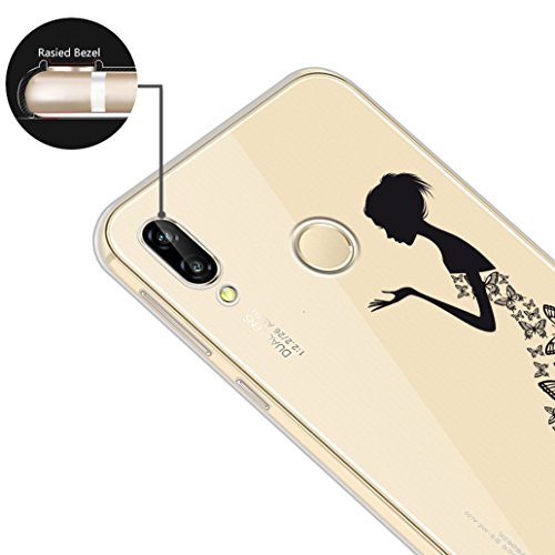 Yoowei Cover per Huawei P20 Lite Trasparente con Disegni + [Pellicola Protettiva in Vetro Temperato], Morbida Silicone Ultra Sottile TPU Gel Custodia per Huawei P20 Lite - Butterfly Girl