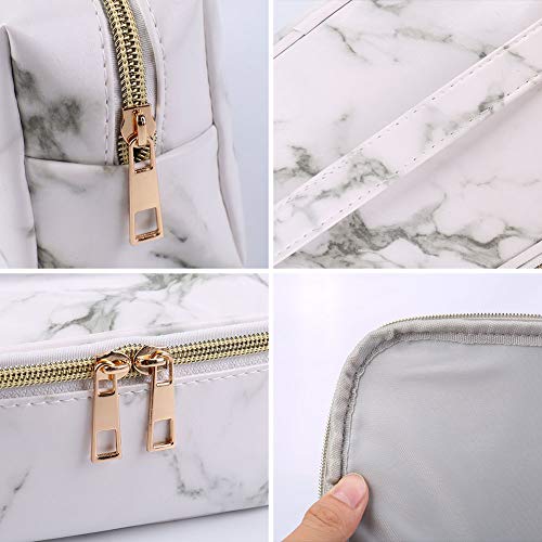 Materiale premium: queste borse da viaggio per cosmetici sono realizzate in pelle PU di alta qualità e poliestere con stampa marmo. Resistente ai graffi, durevole e impermeabile, la robusta cerniera dorata può mantenere in ordine i tuoi prodotti di bellezza.