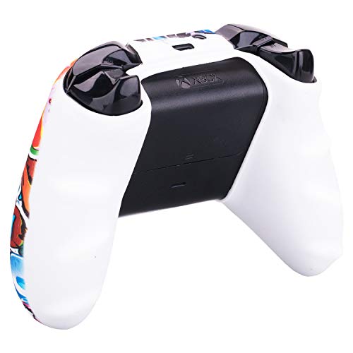 YoRHa Stampa Silicone di Gomma Cover Custodia per la Pelle Cassa Caso Skin per Xbox One S/X Controller x 1 (Graffiti Comici) Con PRO Thumb Grips Copri Levette Analogiche x 8