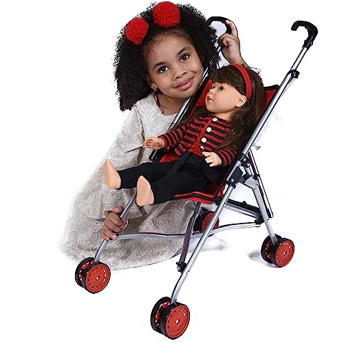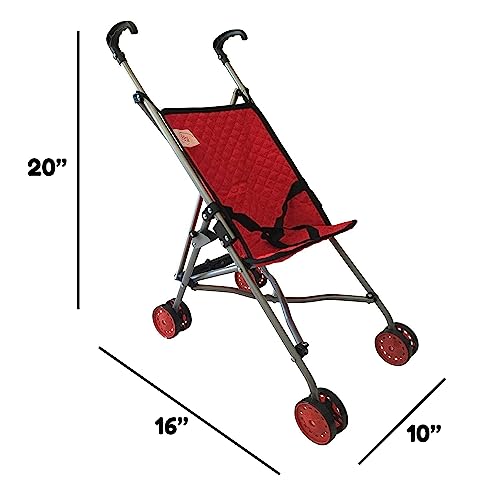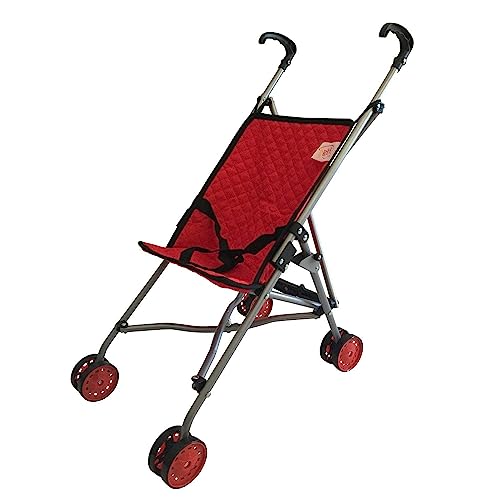 The New York Doll Collection Primo passeggino Rosso Trapuntato Colore per 18 pollici / 46 cm bambole - Pieghe per la conservazione - Bambola Carrozzina Regalo per i più piccoli - Accessori per bambole