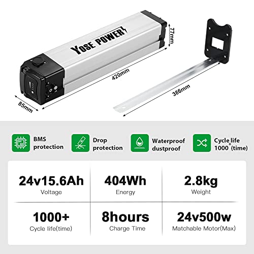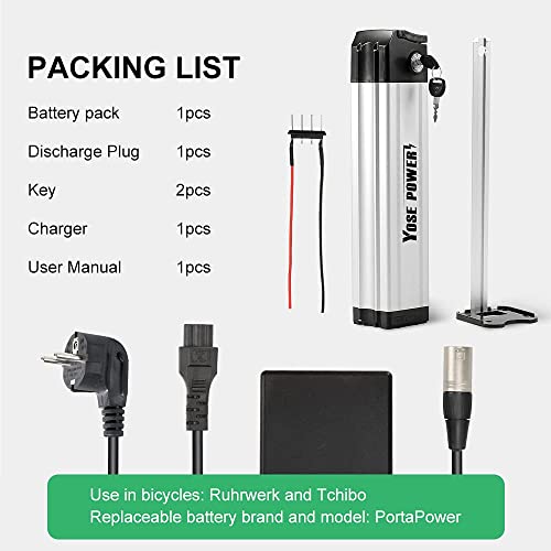 YOSE POWER 24V 15Ah E-Bike Batteria Litio per Bicicletta, Lithium-Ion E-Bike Batteria Nera per Ruhrwerki Tchibo(Non Compatibile con PROPHETE!