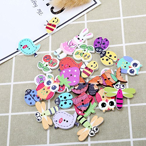 Yosemy [150pcs] Animali Assortiti Pulsanti bottoni in legno dipinti per essere utilizzati a scopi decorativi e per la realizzazione di oggettini fatti a mano