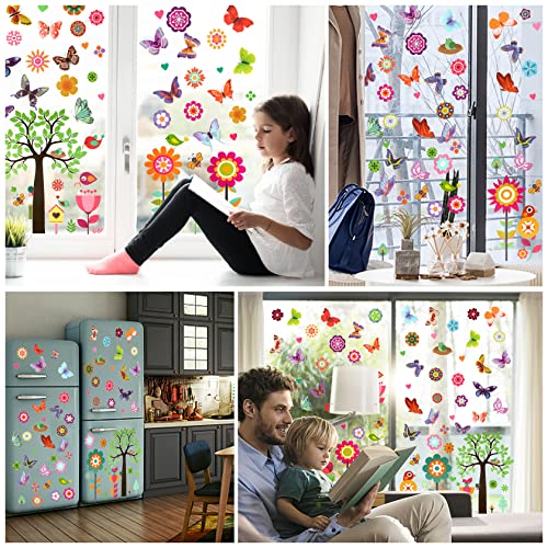 Yosemy 148 Pezzi Adesivi Finestra Primavera,9 Fogli Farfalle Murali Vetrofanie Fiori Anti-Collisione Adesivo Statico Decorazioni per Bambini Vetro Della Fai Da Te Vetrine Negozi Cas