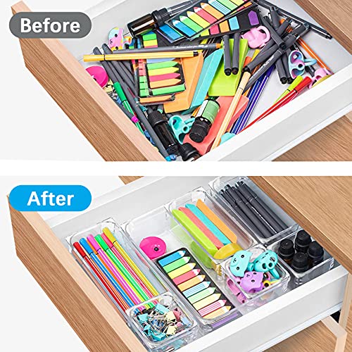 Yosemy 16 pezzi Organizer Cassetti Acrilico Organizzatore de Cassetto Chiaro con 100 pezzi Gommini Protettivi Per Organizzare Forniture Ufficio Cosmetici Strumenti Oggetti Vari