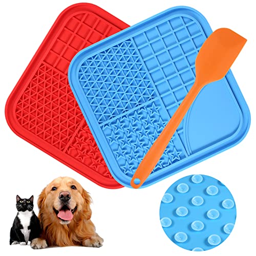 Yosemy Tappetino per Leccare per Cani, 2 PCS Lick Mat Dog (Lick Mats per Cani Blu & Lick Mats per Cani Rosso) e Spatola in Silicone, Tappetino per Leccare Cane con 25 Ventosa per, Bagno/Addestramento