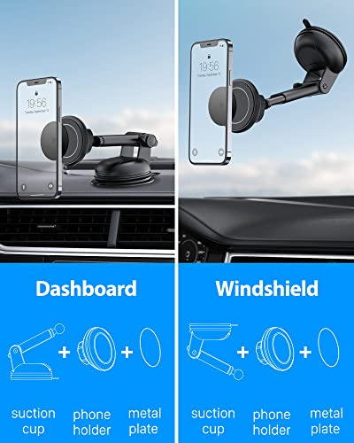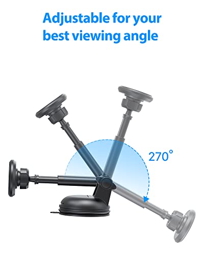 [Versione Migliorata per Cruscotto & Parabrezza] Il braccio ultra-stabile del nuovo supporto può essere esteso fino a un massimo di 142 mm per avvicinare il telefono al conducente e garantire una maggiore facilità di contatto con i dispositivi. Il design del giunto a sfera offre una rotazione di 360 gradi e facilita la regolazione del supporto per ottenere il miglior angolo di visione.