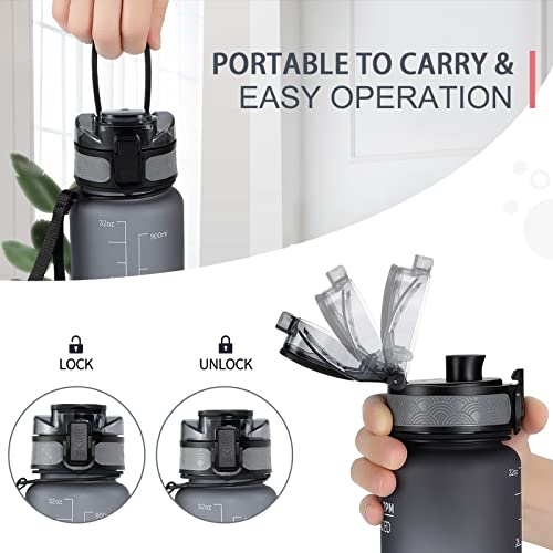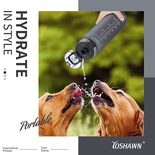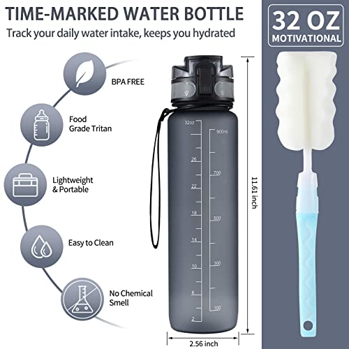 YOSHAWN 1L Bottiglia Acqua Motivante con Timestamp, Borraccia Palestra Senza BPA, a Prova di Perdite, con Pennello per la Pulizia per All'aperto, Yoga e Lavoro, Bici (Grigio)
