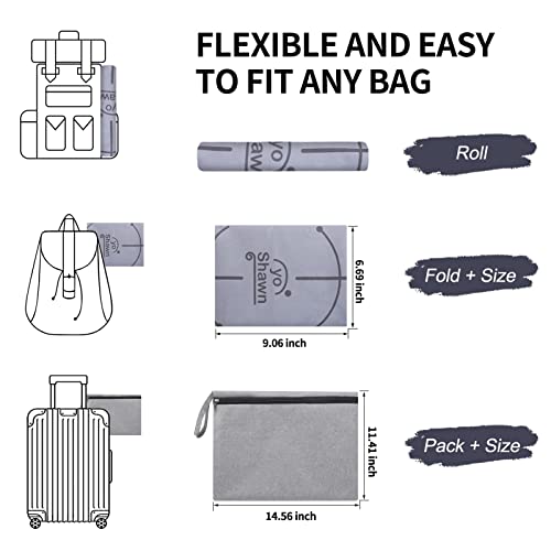 YOSHAWN Tappetino Yoga -1MM 1.3KG Tappetino Yoga da Viaggio Pieghevole Sottile con Borsa il Trasporto & Cinghia Yoga, Design Yoga Mat Durevole Similpelle Scamosciata per Pilates All'aperto (Grigio)