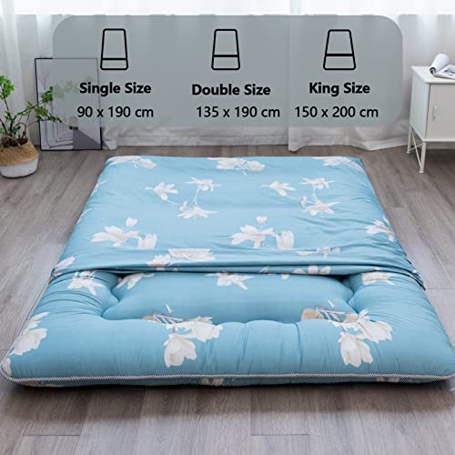YOSHOOT Materasso Futon Materasso Tatami Giapponese Materasso da Terra Pieghevole Materassino Portatile Arrotolabile Materasso da Campeggio Lettino Divano Letto Futon (Fiore Blu Singolo)