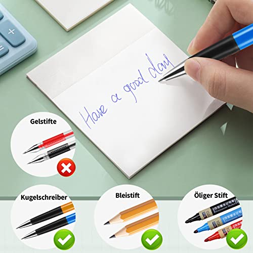 【Materiale in PET e autoadesivo】: la carta per appunti è realizzata in PET, che non è solo impermeabile ma anche robusto, non facile da strappare.La carta per appunti è autoadesiva e ha una buona adesione, non lascia tracce quando la strappi Un set di 500 foglietti adesivi, dimensioni 7,5 x 7,5 cm.La quantità è sufficiente, leggera e piccola, facile da trasportare per le tue esigenze.