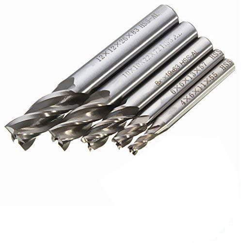 Yosoo 5pz CNC Gambo Dritto Frese Con 4 Scanalature Elicoidali, Cutter Hss da 4/6/8/10/12 mm