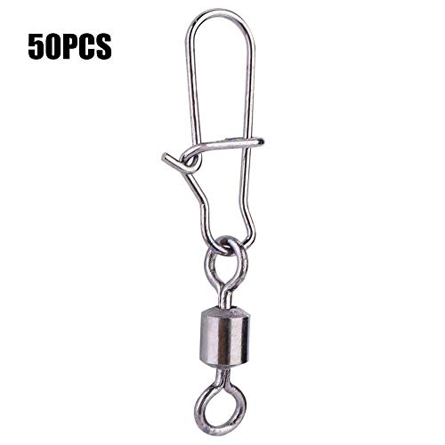 Yosoo Health Gear Girelle da Pesca Acciaio Inox, Girella da Pesca con Moschettone, Girelle con Cuscinetto a Sfera, Moschettoni Pesca Spinning #6, Girelle a Scatto per Pesca, 50 Pezzi 6#