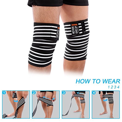 Una vestibilità migliore: le nostre ginocchiere sono lunghe 82 pollici, ampia area regolabile, in modo da poter utilizzare più avvolgimenti intorno alla gamba anche come supporto per polpacci, fasciatoio. Si può avvolgere più volte intorno alla gamba per un sostegno ottimale, indipendentemente dalle dimensioni del vostro bisogno.