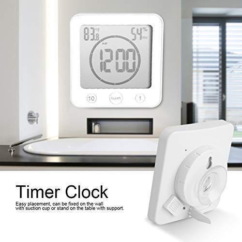 Yosoo Orologio Da Bagno Impermeabile Con Ventosa E Schermo Digitale Lcd Termometro Igrometro Da Parete Silenzioso Utilizzabile Anche Come Timer Da Cucina Bianca