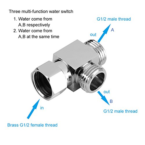 Yosoo - Valvola deviatore per doccia, a 3 vie, separatore d'acqua in ottone con placcatura cromata, adattatore doccia da uno a due uscite