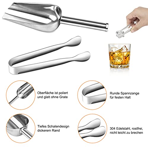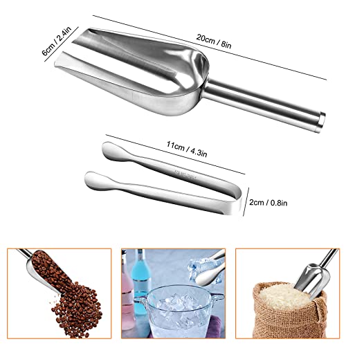Materiale in acciaio inossidabile: la paletta per cubetti di ghiaccio e le piccole pinze per cubetti di ghiaccio sono realizzate in acciaio inossidabile, spesse, forti e sicure, resistenti alla corrosione e durevoli. La superficie è levigata e senza sbavature. Non taglia le mani e usa con fiducia.Ha un aspetto a specchio, è molto facile da pulire e sembra nuovo dopo la pulizia.