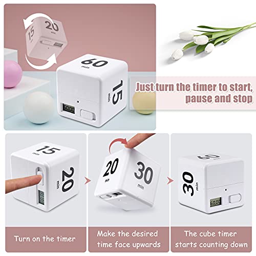 Yotako Timer digitale a cubo, timer per la gestione del tempo dei bambini, per lavoro, studio, sport, cucina, forno, scrivania (15-20-30-60 minuti, bianco)